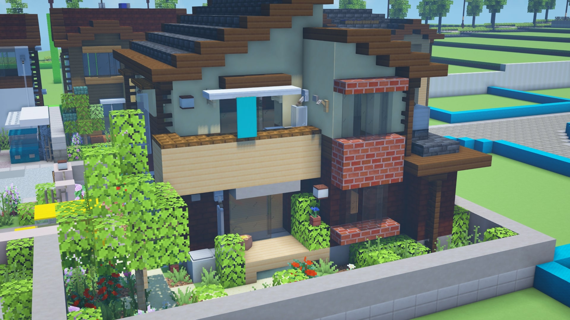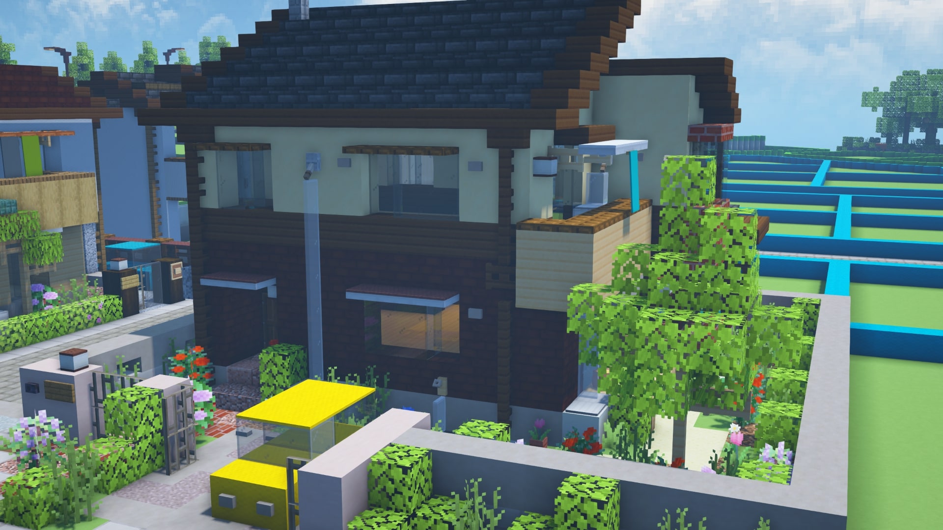 土地が広いので庭も贅沢に使ってます。まだほとんど建っていない未開の地感好きです